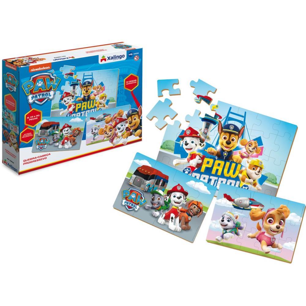 Os pequenos vao montar uma imagem incrivel com o Quebra-cabeca Progressivo Patrulha Canina da Xalingo, composto de 3 quebra-cabecas, com 3 estagios para as criancas aprenderem progressivamente. Contem 35 pecas em madeira MDF reflorestada. Patrulha Canina e uma animacao infantil criada por Keith Chapman. Uma serie de acao e aventura estrelada por seis filhotes heroicos liderados por um menino de 10 anos de idade chamado Ryder. Com uma mistura unica de habilidades para resolver problemas. Recomendado para criancas a partir de 4 anos.