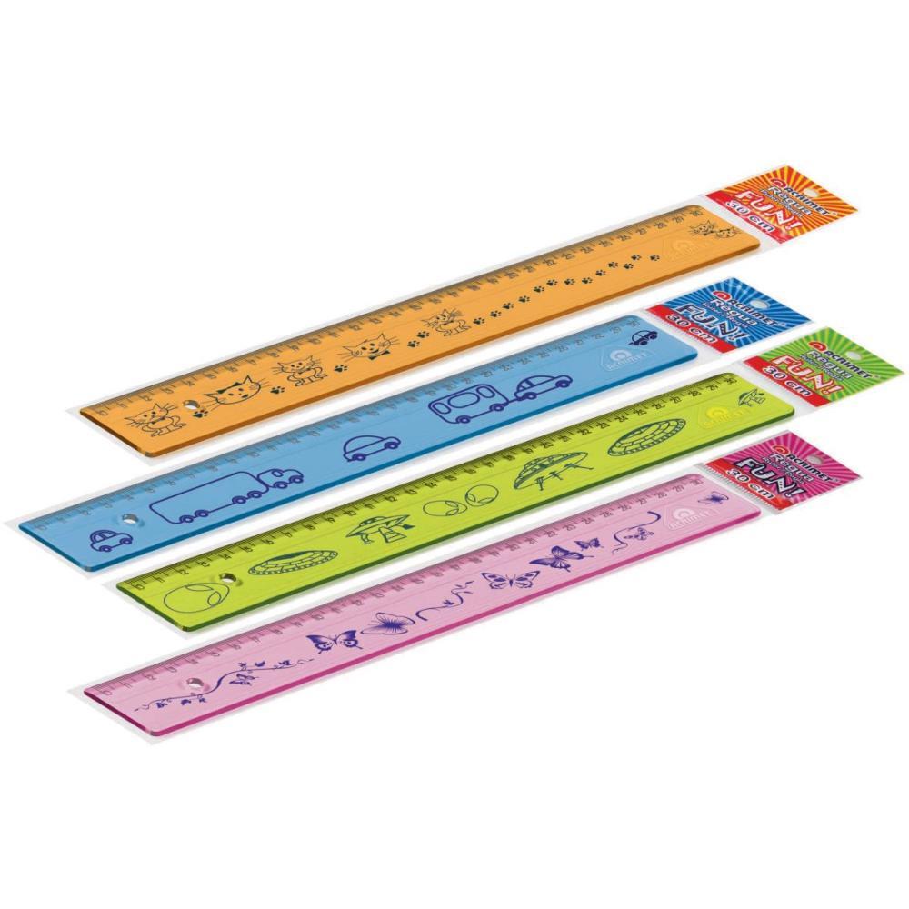 Mais diversão na hora de estudar! As réguas FUN aliam toda a qualidade Acrimet com motivos alegres e divertidos. Régua em poliestireno, com escala de 30 cm gravada por transferência de imagem, garantindo alta precisão. Possui dois micros ressaltos na face que entra em contato com o papel para evitar o desgaste da escala. Cantos arredondados para maior segurança. Várias opções de cores.