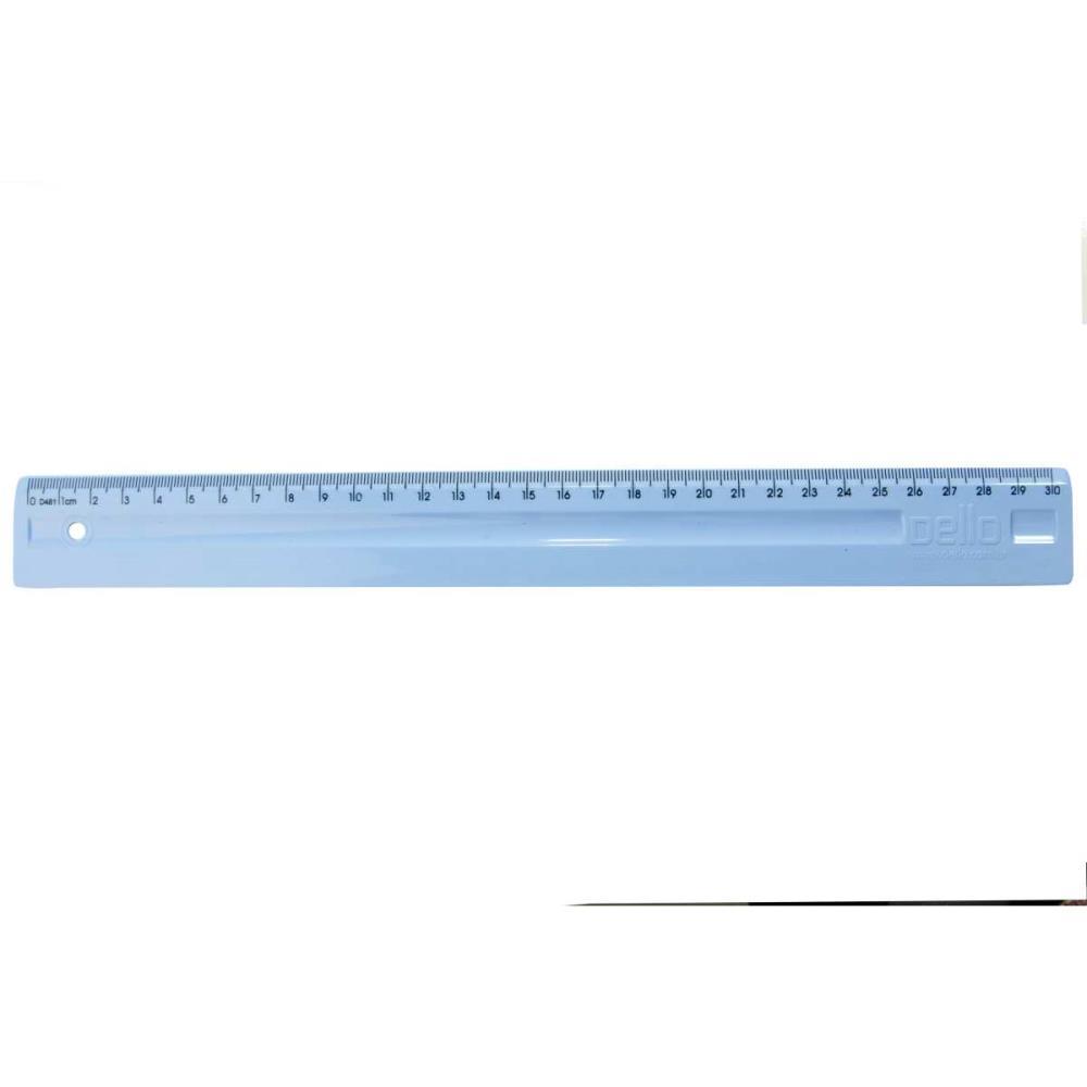 Régua super resistente 30cm de poliestireno (3,4 mm de espessura). Suporte central para dedos, manuseio mais firme e precisão no traçado. Ideal para crianças e para orientar a leitura de textos.