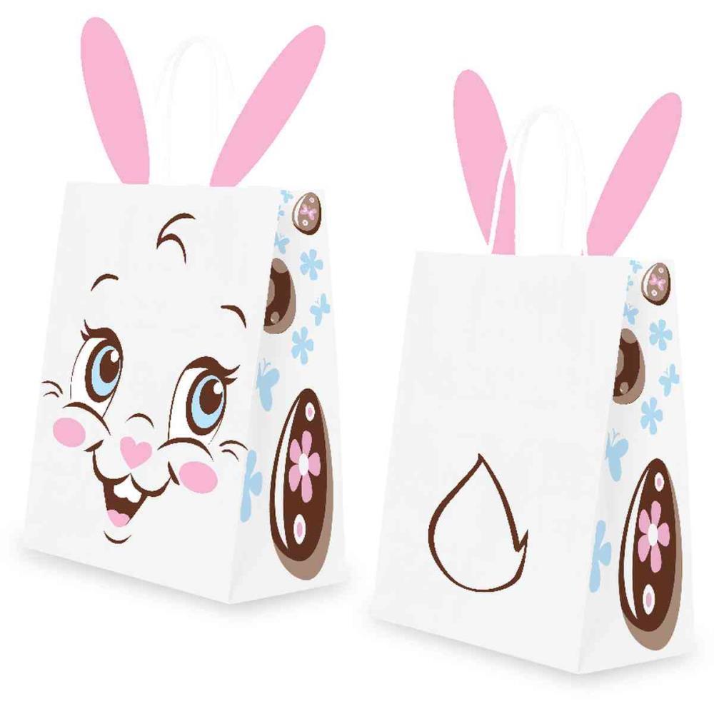 SACOLA DE PAPEL , TAMANHO PP, C ORELHA PASCOA DIVERTIDA. Medidas CxLxP: 18 cm x 14,5 cm x 7 cm