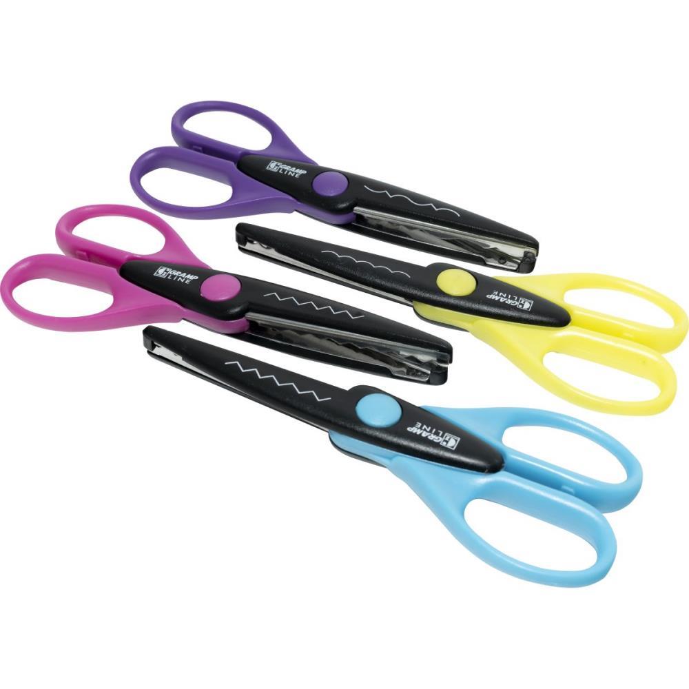 Tesouras de picote com 15,5 cm. Ideais para trabalhos escolares e artesanais.
