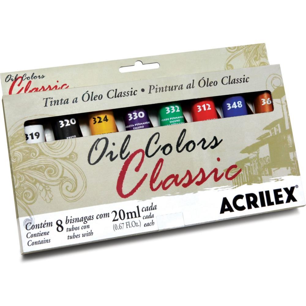 Perfeita para pinturas em tela. Por ser a base de óleo, ela possui textura, acabamento e consistência uniforme e brilhante. Ela tem uma consistência própria que é indicada para uso com pincel ou espátula. As cores são miscíveis em si e a diluição da tinta é necessário em muitas das técnicas de pintura a óleo. Indicamos usar os seguintes diluentes: Terebintina ou Ecosolv Acrilex. Cores que compõe o estojo: Branca / preta / amarela / azul marinho / verde / vermelho / azul / dourada.