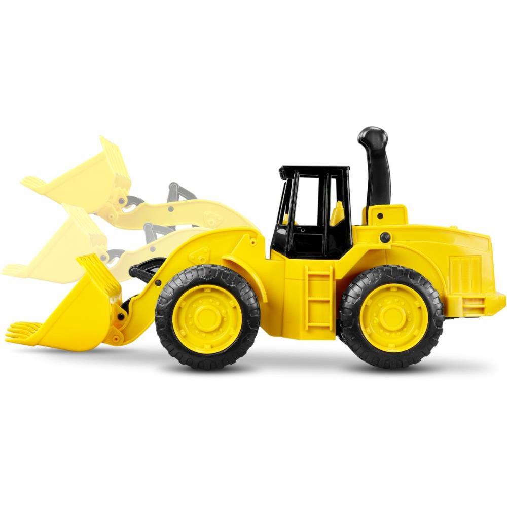 A Roma Workers Carregadeira e articulada, possui duas alavancas para a crianca levantar e abaixar o braco de elevacao, como tambem bascular a cacamba.