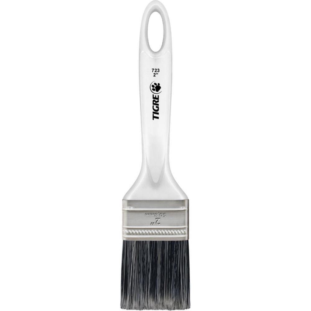 Trincha média multiuso para todos os tipos de tintas látex, acrílica, esmalte, verniz, stain) filamento sintético gris que proporciona um excelente acabamento em todas as superfícies como paredes de alvenaria, madeira ou ferro. Tamanho 2 polegada.