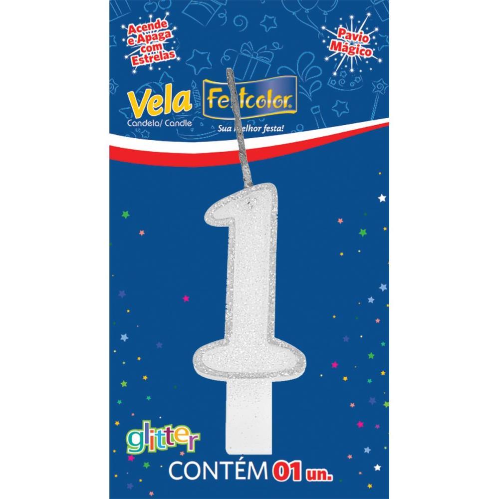 Vela para Aniversario N.01 Branca Glitter CX.C/10