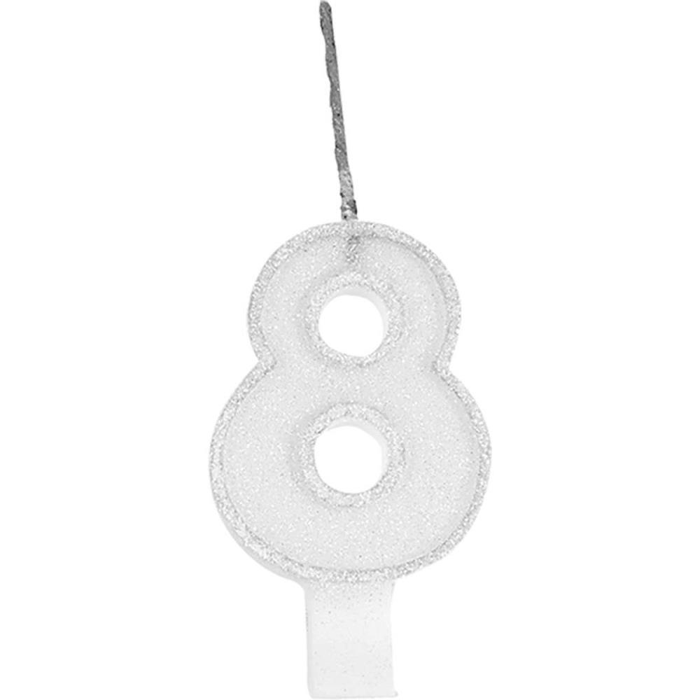 Vela para Aniversario N.08 Branca Glitter CX.C/10
