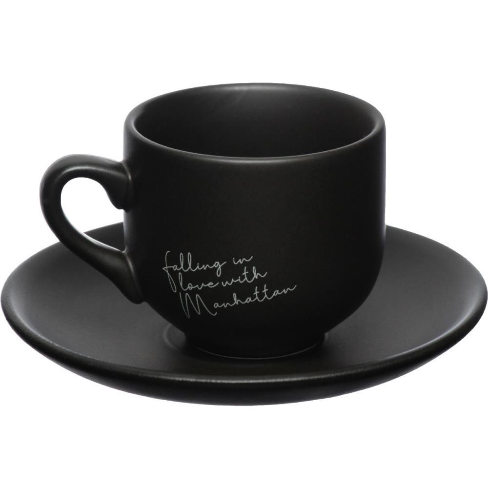 XICARA PARA CAFE COM PIRES DE PORCELANA MANHATTAN PRETA 80ML 6 PECAS